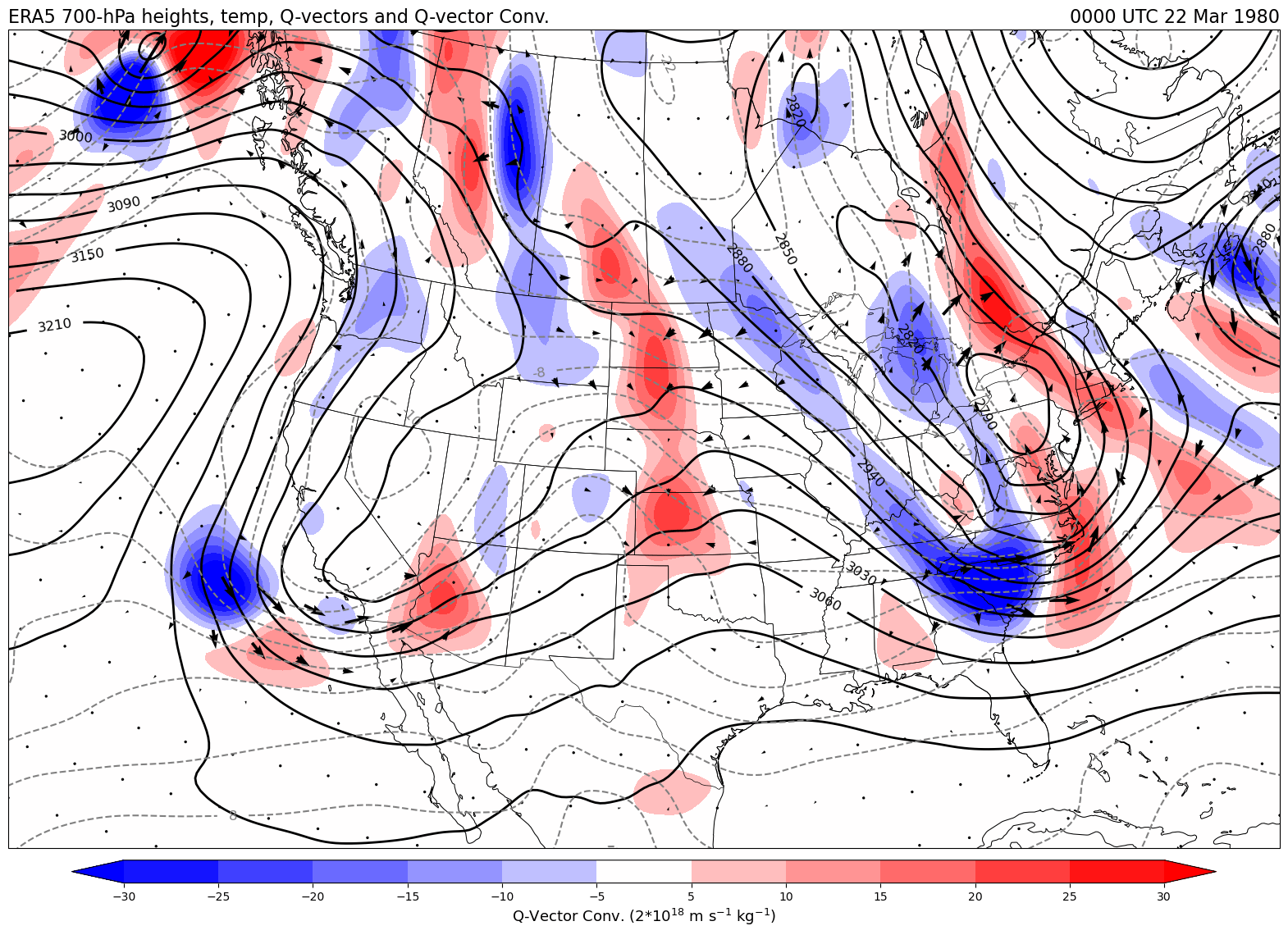 Data obtained from the ECWMF Climate Data Store and plotted using tools from the Unidata Python training gallery.
